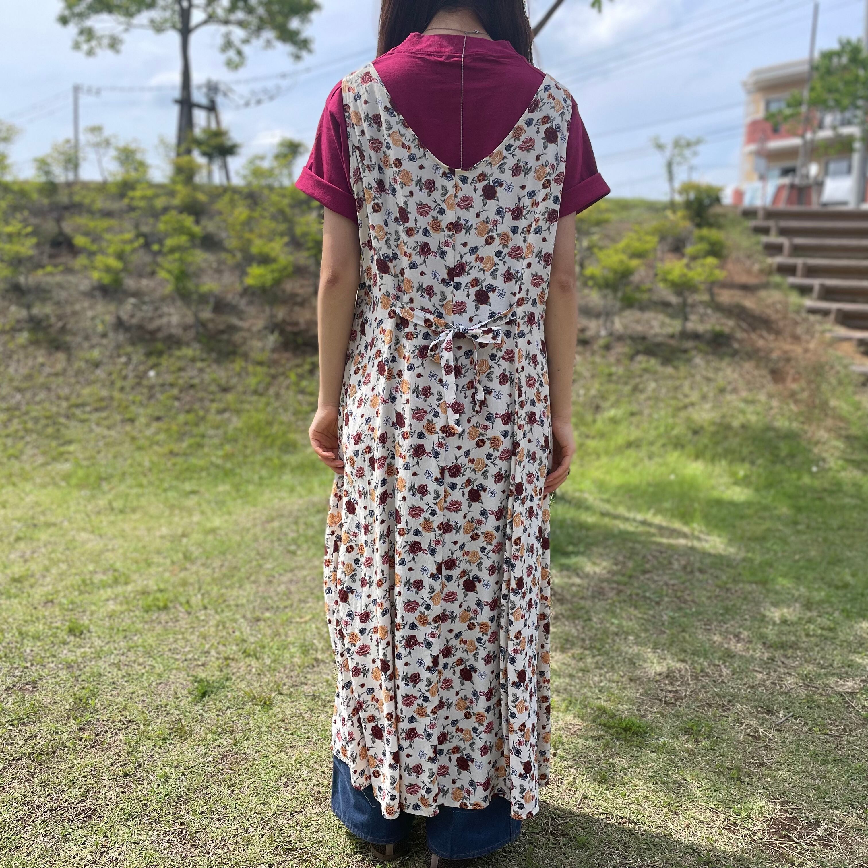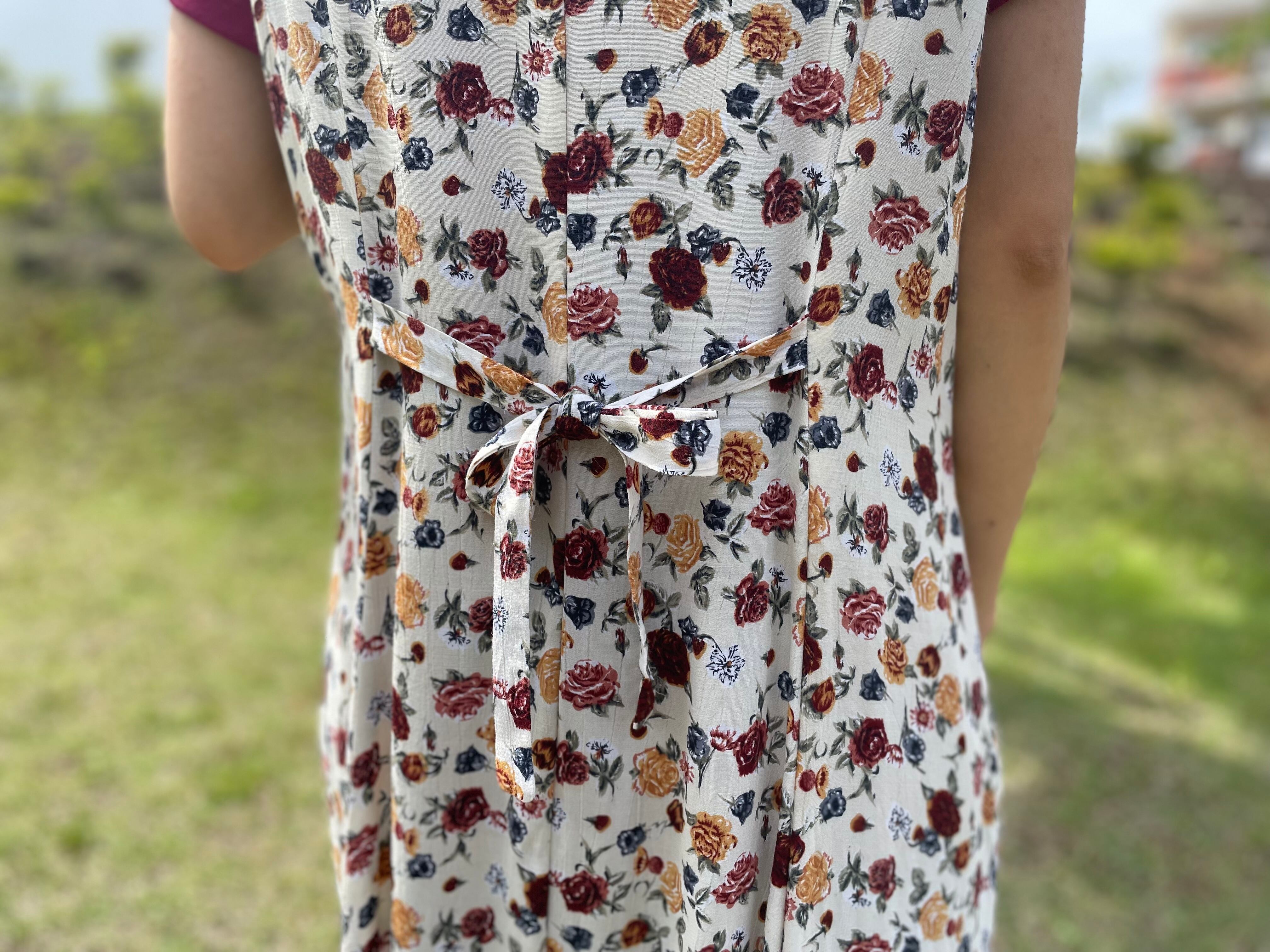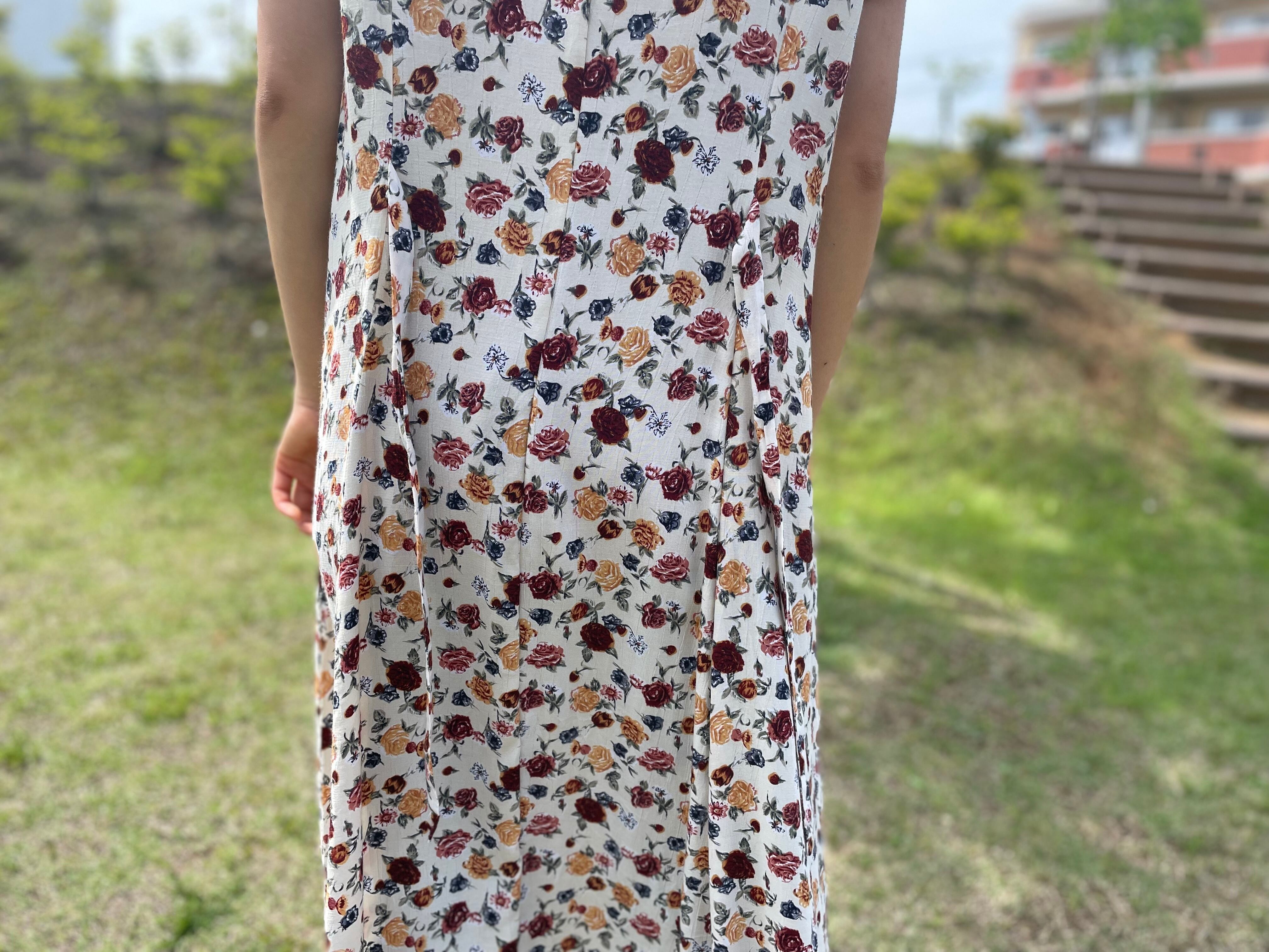 細かなバラ柄が描かれたワンピース