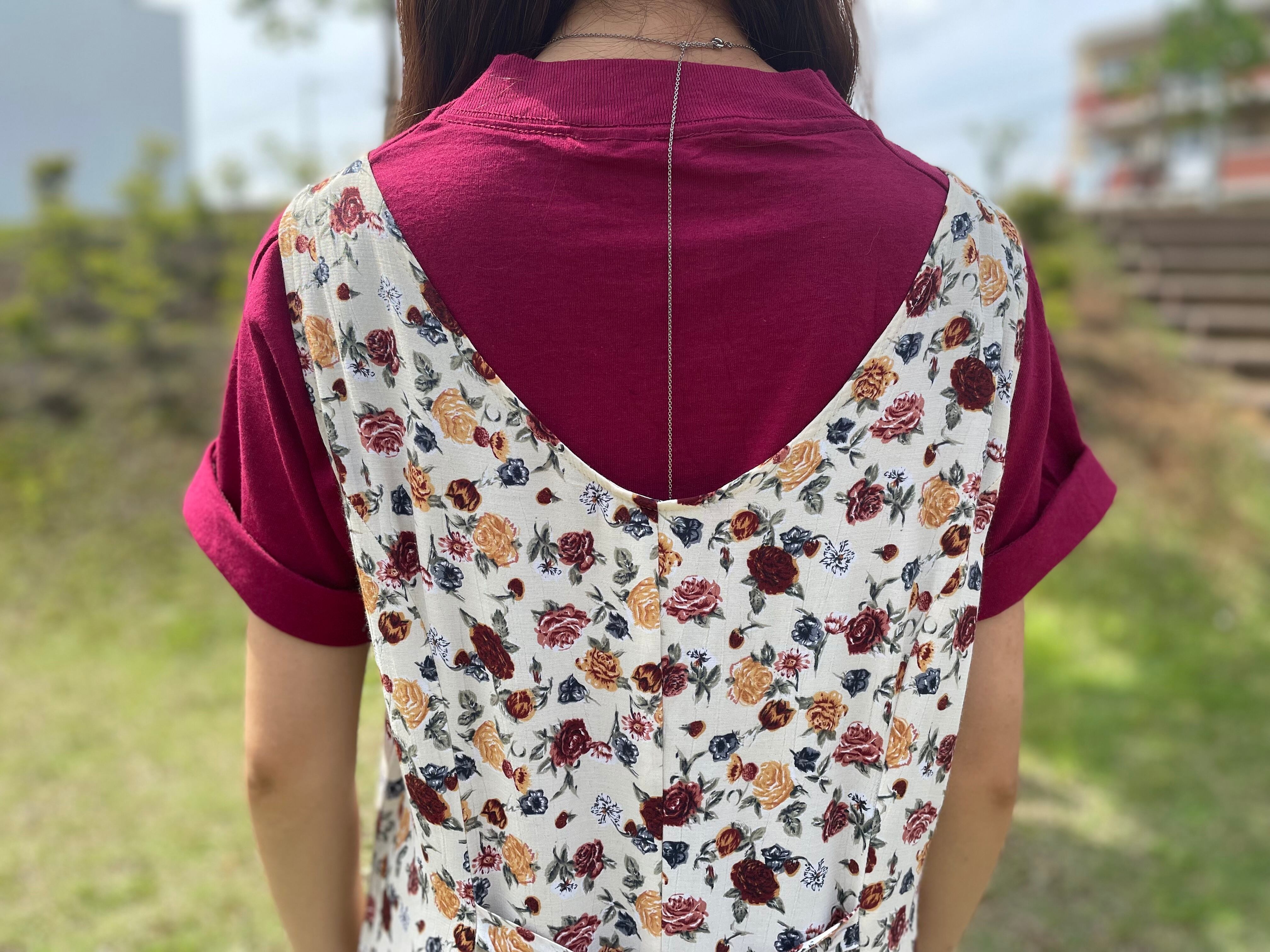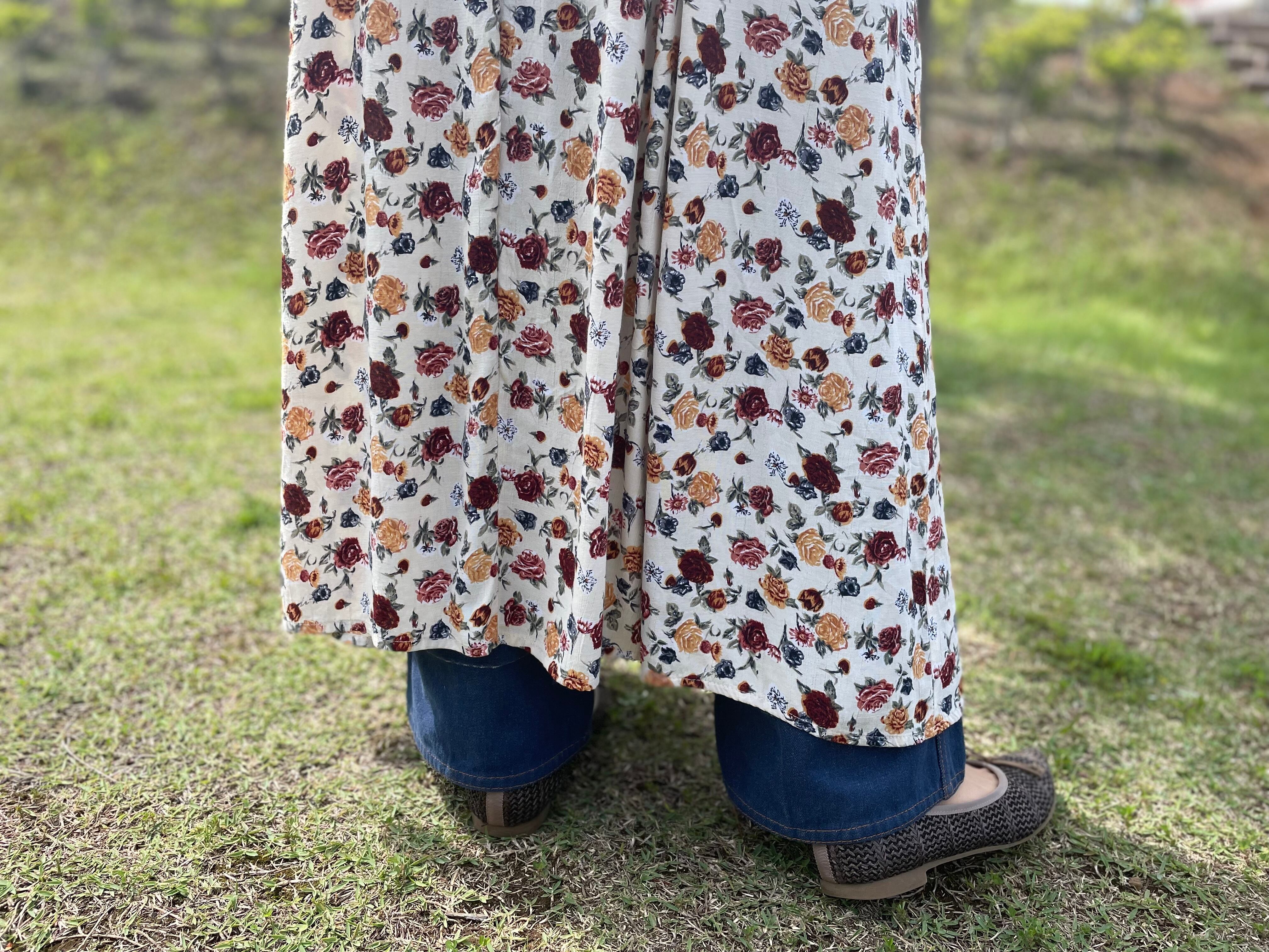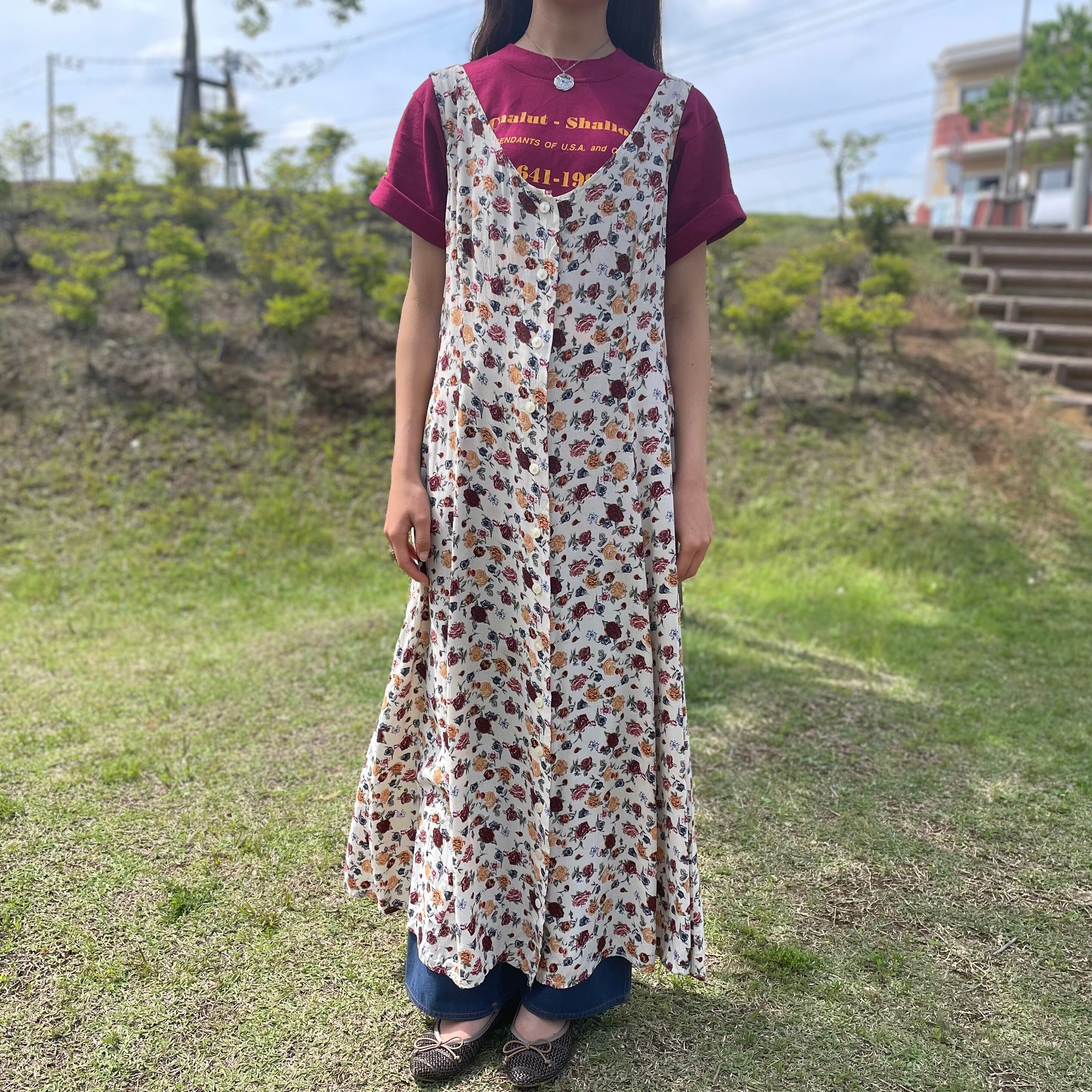 細かなバラ柄が描かれたワンピース