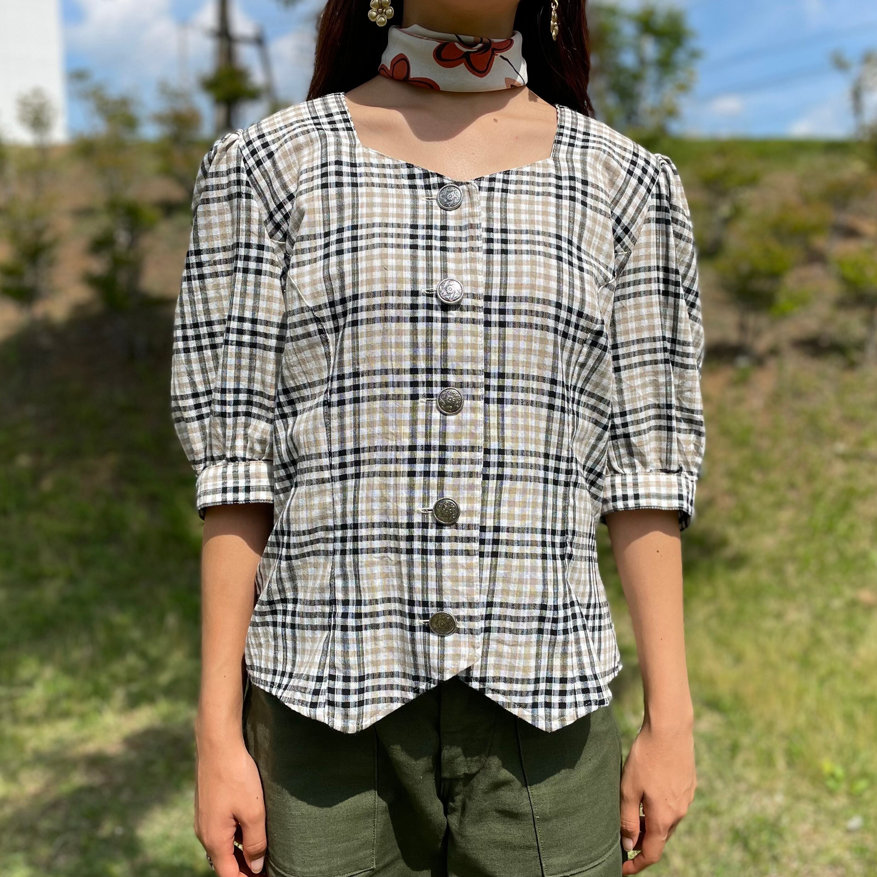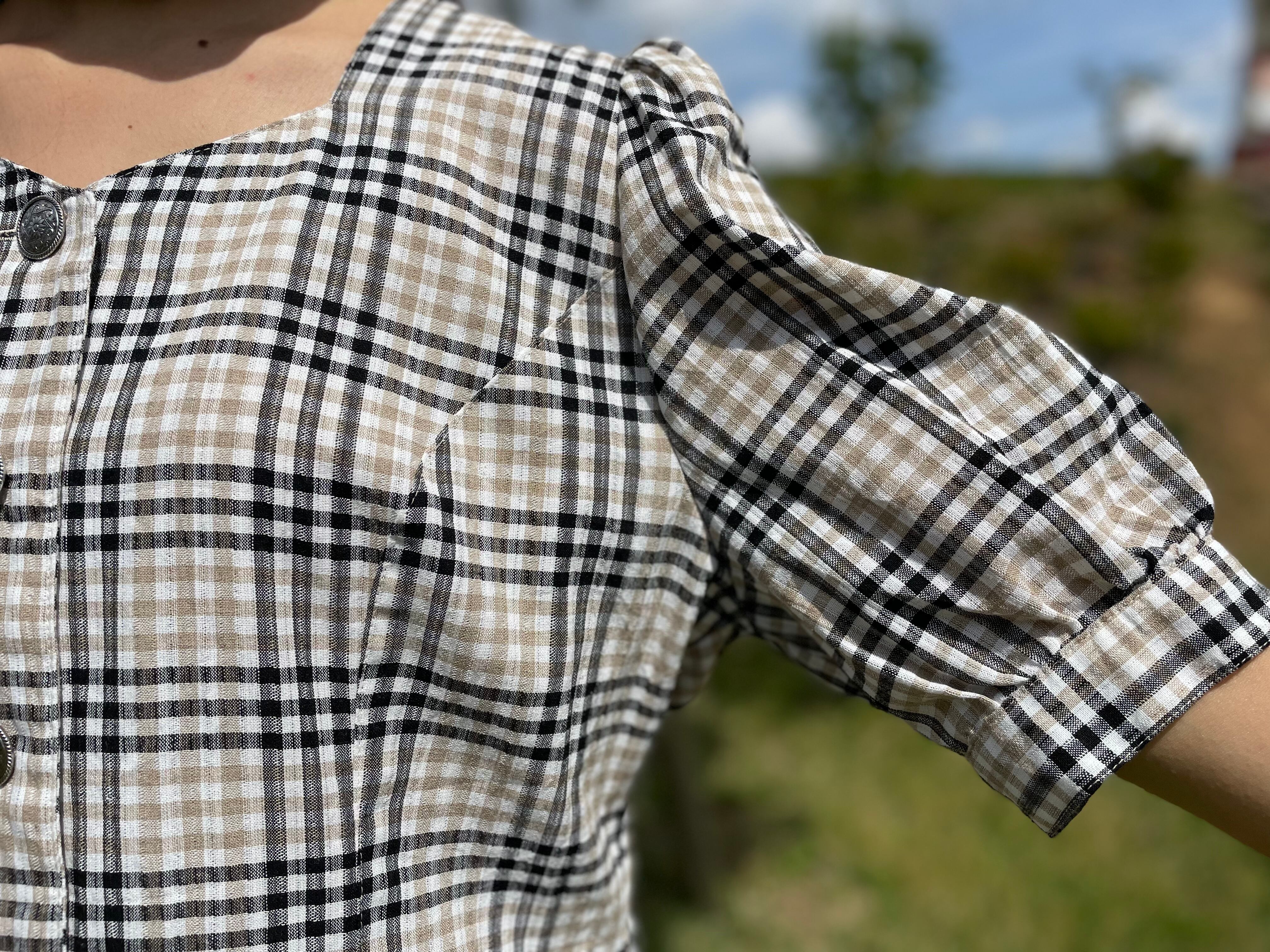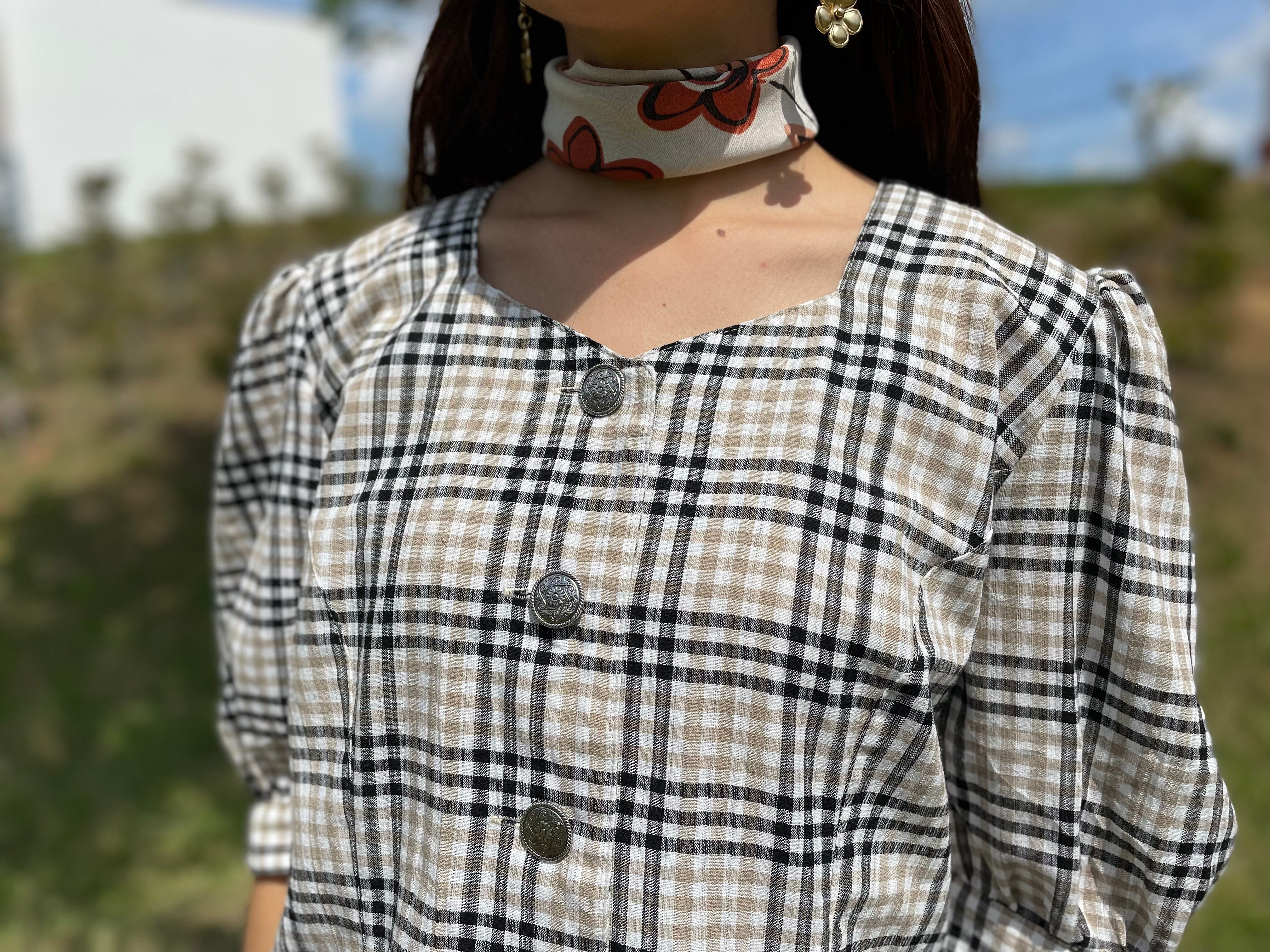 ふんわりしたパフスリーブが可愛らしい1着です。